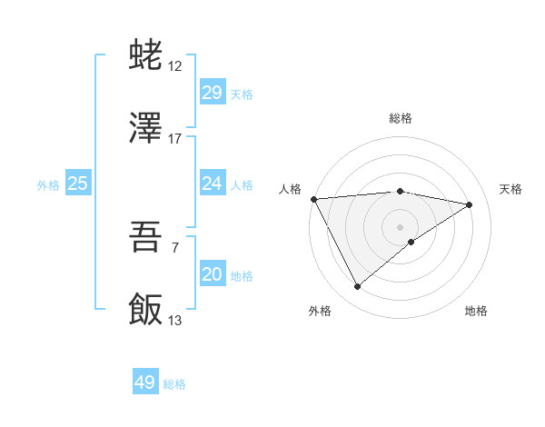 蛯澤 吾飯さんの天格は29画の4点!