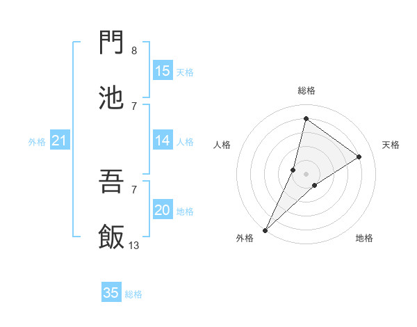 門池 吾飯さんを姓名の画数から五運を鑑定