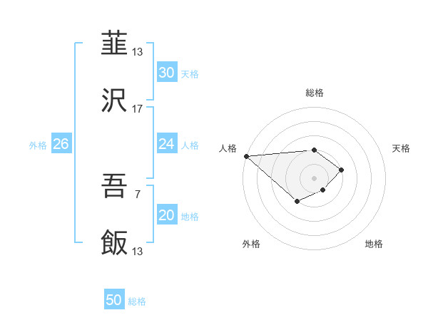 韮沢 吾飯さんを姓名の画数から五運を鑑定