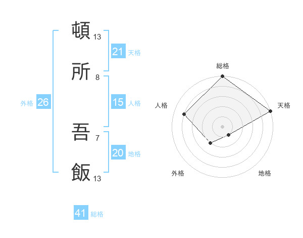 頓所 吾飯さんを姓名の画数から五運を鑑定