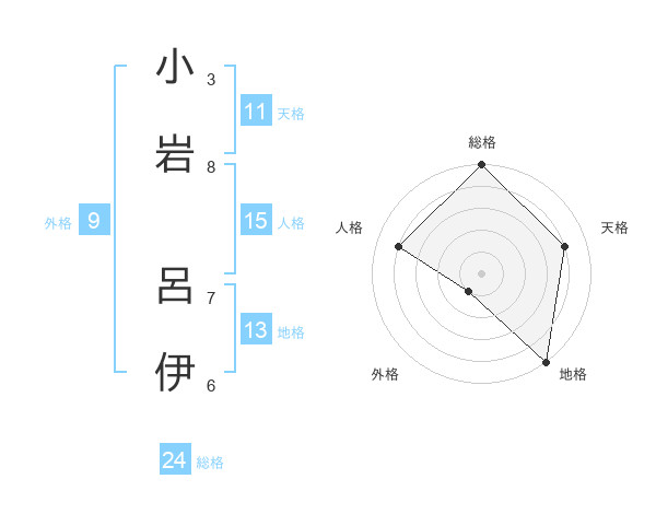 小岩 呂伊さんの総格は24画の5点!
