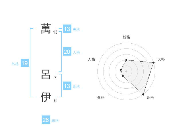 萬 呂伊さんの総格は26画の2点!