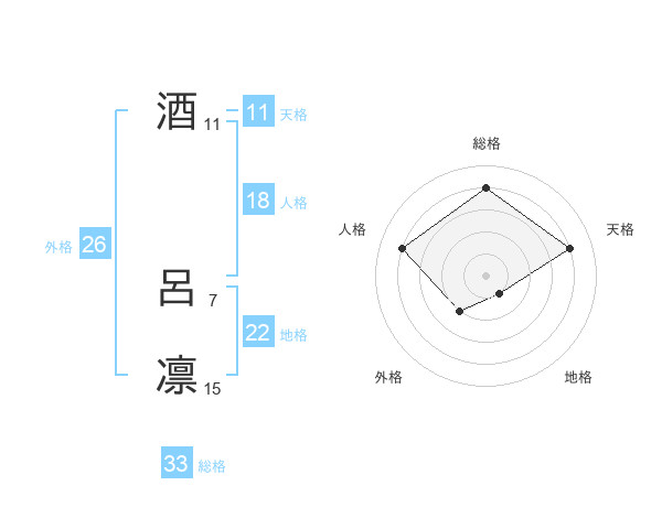 酒 呂凛さんの総格は33画の4点!