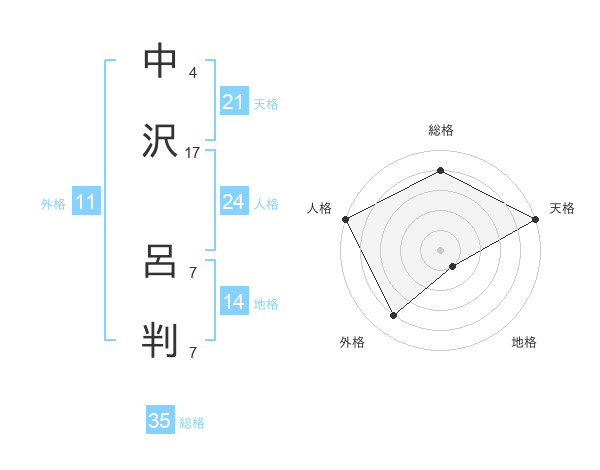 中沢 呂判さんの総格は35画の4点!