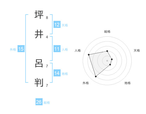坪井 呂判さんを姓名の画数から五運を鑑定