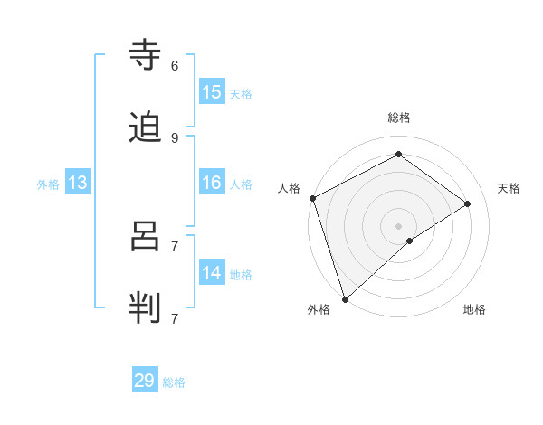 寺迫 呂判さんの総格は29画の4点!