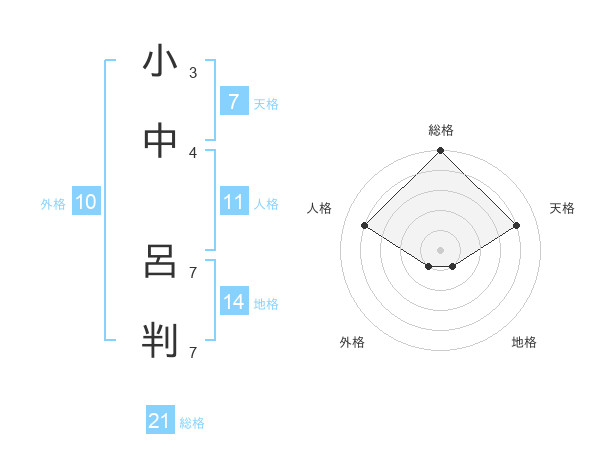 小中 呂判さんの総格は21画の5点!