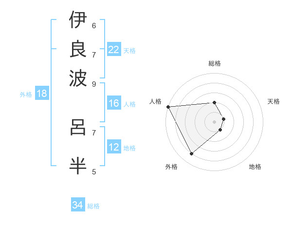 伊良波 呂半さんを姓名の画数から五運を鑑定