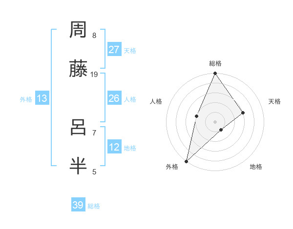 周藤 呂半さんを姓名の画数から五運を鑑定