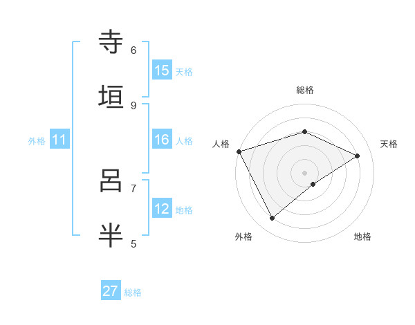 寺垣 呂半さんを姓名の画数から五運を鑑定