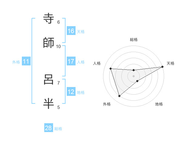 寺師 呂半さんを姓名の画数から五運を鑑定