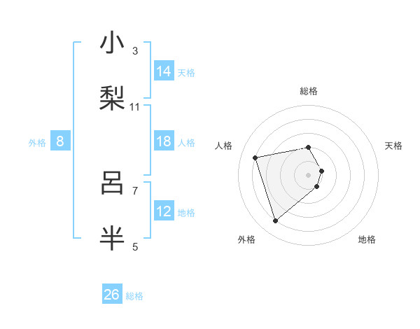 小梨 呂半さんの総格は26画の2点!