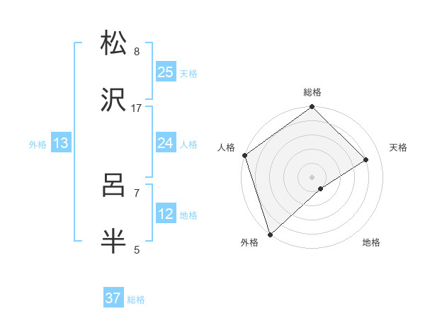 松沢 呂半さんを姓名の画数から五運を鑑定