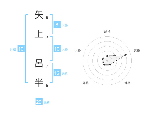 矢上 呂半さんを姓名の画数から五運を鑑定