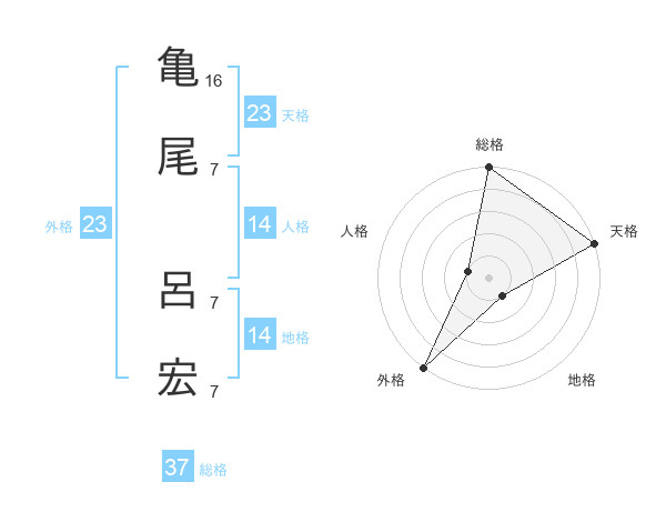 亀尾 呂宏さんを姓名の画数から五運を鑑定