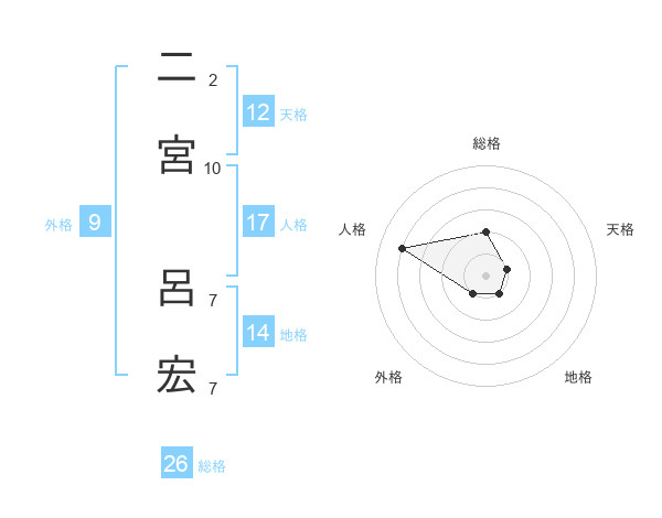 二宮 呂宏さんを姓名の画数から五運を鑑定