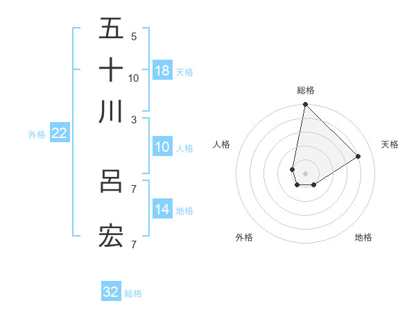 五十川 呂宏さんを姓名の画数から五運を鑑定