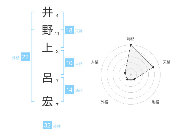 井野上 呂宏さんを姓名の画数から五運を鑑定