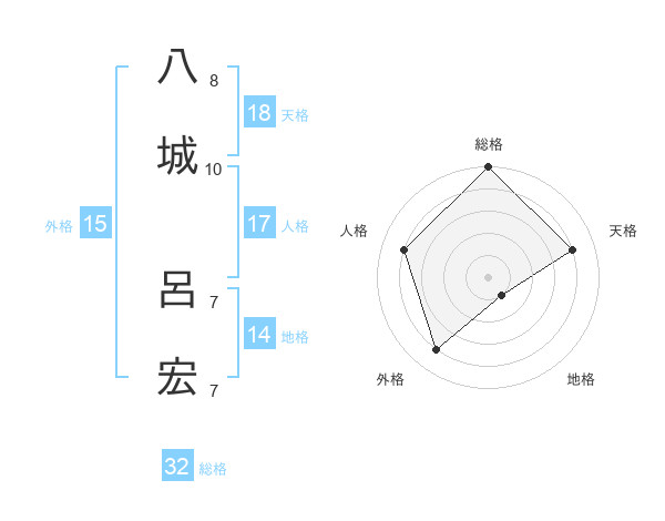 八城 呂宏さんの総格は32画の5点!