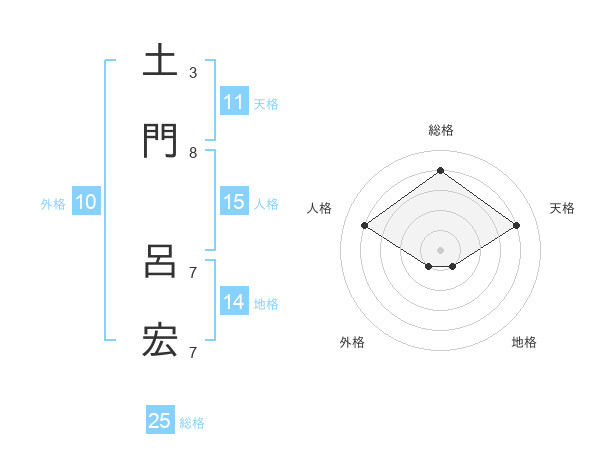 土門 呂宏さんを姓名の画数から五運を鑑定