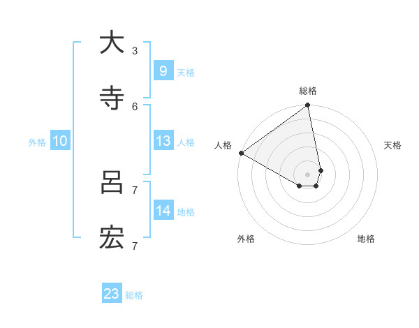 大寺 呂宏さんの総格は23画の5点!