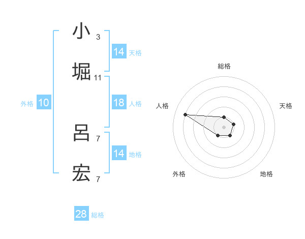 小堀 呂宏さんを姓名の画数から五運を鑑定