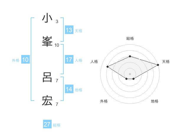 小峯 呂宏さんの天格は13画の5点!