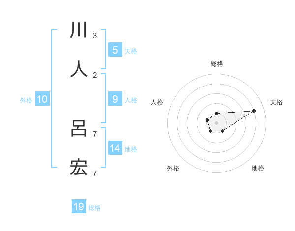 川人 呂宏さんの天格は5画の4点!