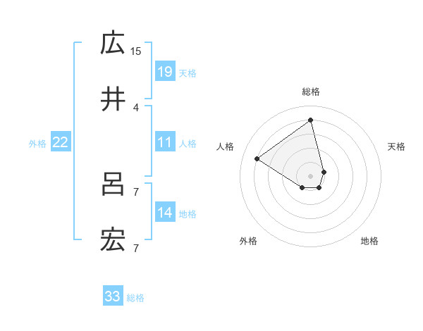 広井 呂宏さんを姓名の画数から五運を鑑定
