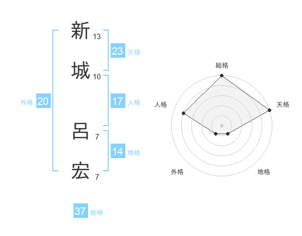新城 呂宏さんの総格は37画の5点!