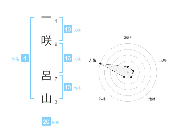 一咲 呂山さんを姓名の画数から五運を鑑定