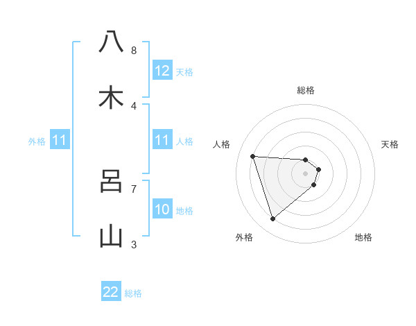 八木 呂山さんの総格は22画の1点!