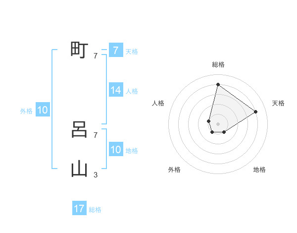 町 呂山さんの総格は17画の4点!