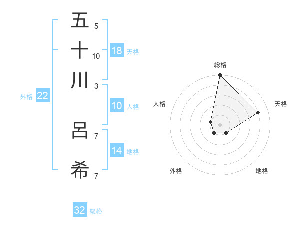 五十川 呂希さんを姓名の画数から五運を鑑定