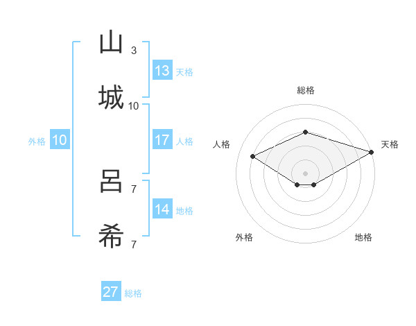 山城 呂希さんの天格は13画の5点!
