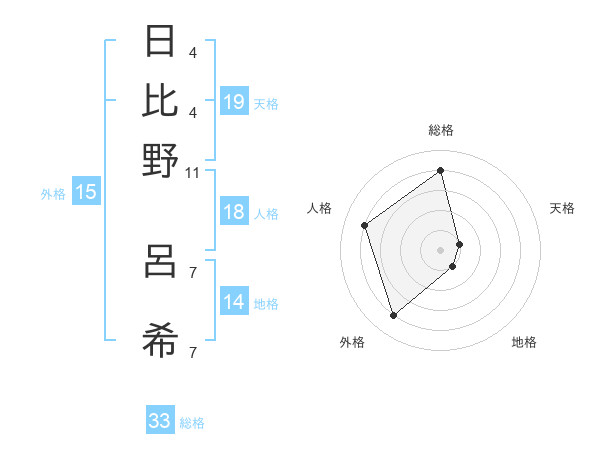 日比野 呂希さんを姓名の画数から五運を鑑定