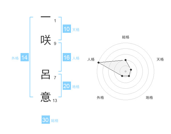 一咲 呂意さんを姓名の画数から五運を鑑定