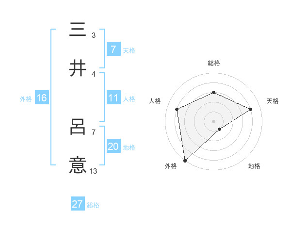 三井 呂意さんの総格は27画の3点!