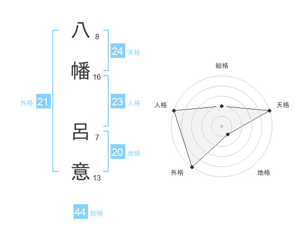 八幡 呂意さんの総格は44画の2点!