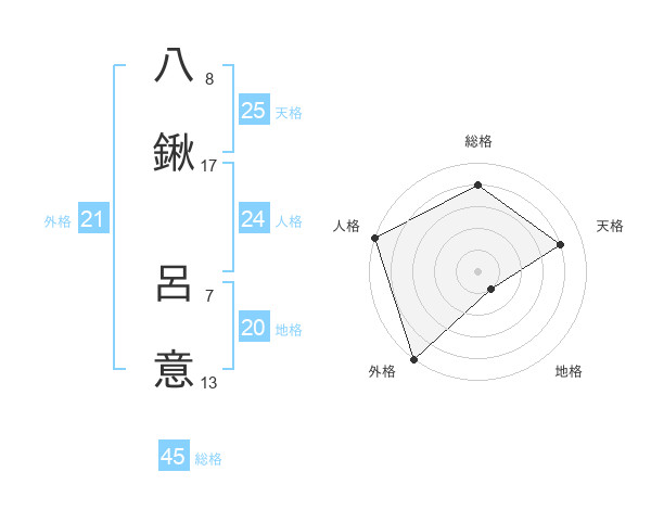 八鍬 呂意さんの外格は21画の5点!