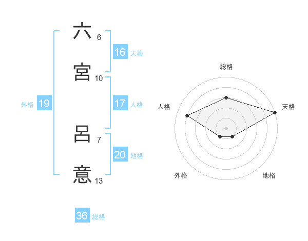 六宮 呂意さんの天格は16画の5点!