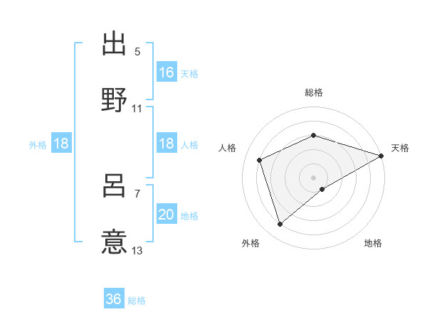出野 呂意さんを姓名の画数から五運を鑑定