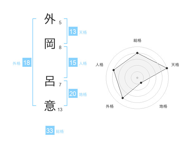 外岡 呂意さんを姓名の画数から五運を鑑定