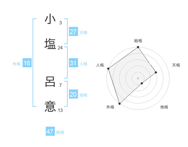 小塩 呂意さんを姓名の画数から五運を鑑定