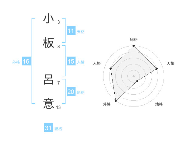 小板 呂意さんの総格は31画の5点!