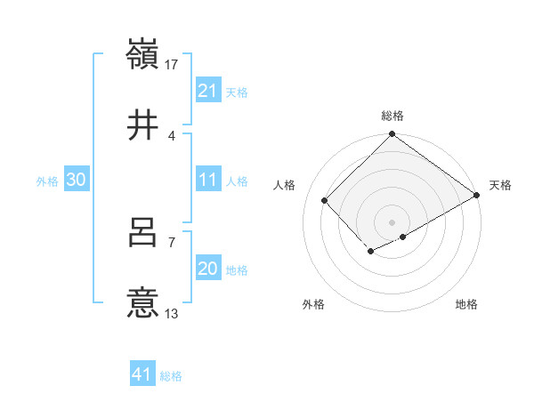 嶺井 呂意さんを姓名の画数から五運を鑑定