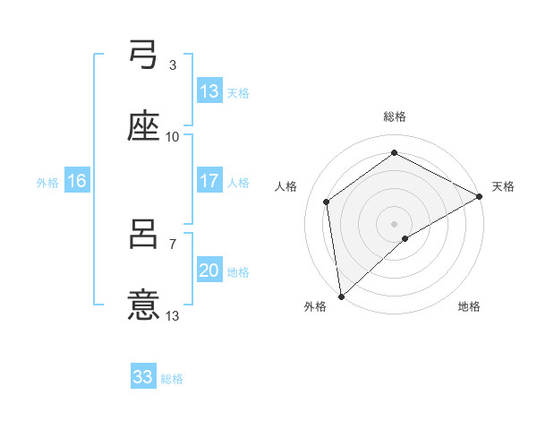弓座 呂意さんを姓名の画数から五運を鑑定