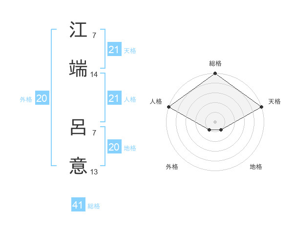 江端 呂意さんの天格は21画の5点!