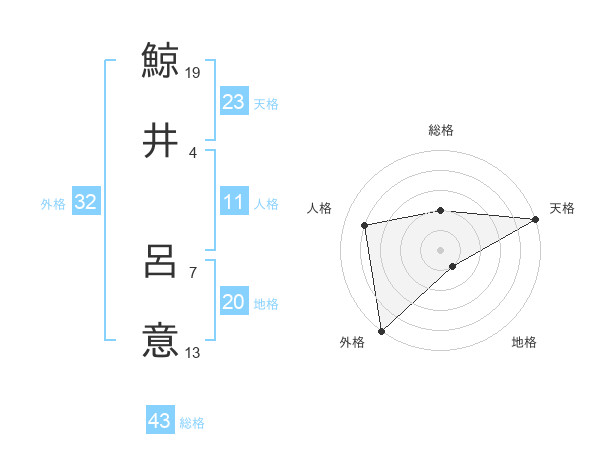 鯨井 呂意さんの天格は23画の5点!