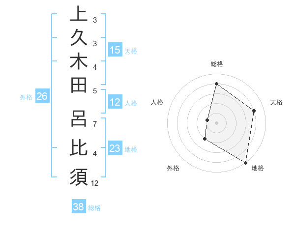 上久木田 呂比須さんの総格は38画の4点!